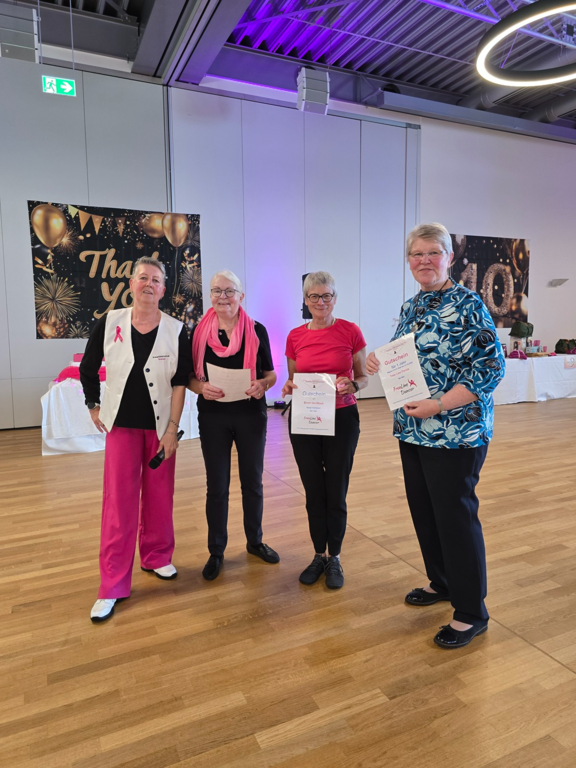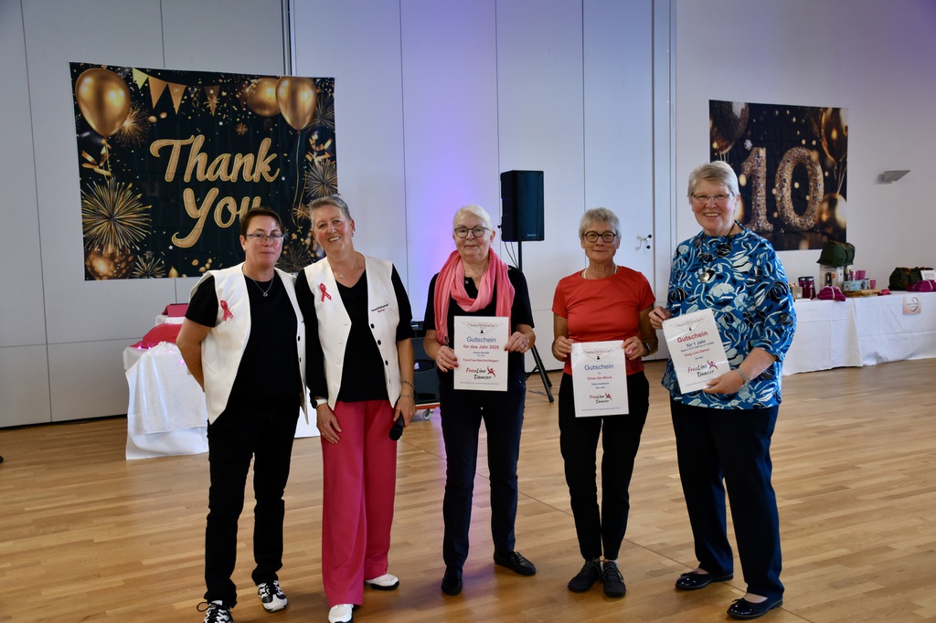 Ein ganz besonderer Dank gilt auch allen, die unsere Tombola unterstützt haben. Durch eure Großzügigkeit ist eine beeindruckende Summe für die Deutsche Brustkrebshilfe e.V, zusammengekommen, die wir inzwischen übergeben durften. Ihr habt mit euren Spenden gezeigt, dass wir gemeinsam nicht nur tanzen, sondern auch Gutes bewegen können.