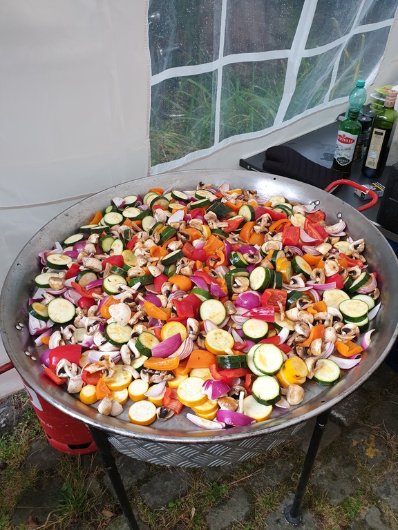 Die Vorbereitungen laufen weiter... Heute in der Testphase die Veggie Variante vom Grill... Wir sind dran...