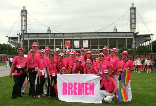 Was für eine Woche!!! All die Eindrücke zu verarbeiten, wird wohl noch eine ganze Weile dauern... Tanzen verbindet die Welt! - Aber auch uns Tänzerinnen und Tänzer aus Bremen! Ich bin mir nicht sicher, ob mir die pinkfarbenen T-Shirts fehlen werden, mit denen wir uns eine Woche lang geschmückt haben. Ganz sicher aber das "wohlige Gefühl" beim Anblick der vielen "pinken"-Bremer TänzerInnen, die auf diesen Gay Games den größten einheitlichen Eindruck hinterließen. Schön war es auch, dass unser T-Shirt Sponsor dann auch tatsächlich zu unserem Formationsturnier erschien, und sichtlich beeindruckt, voll der Lobesworte für uns war. Dank an Dich René !